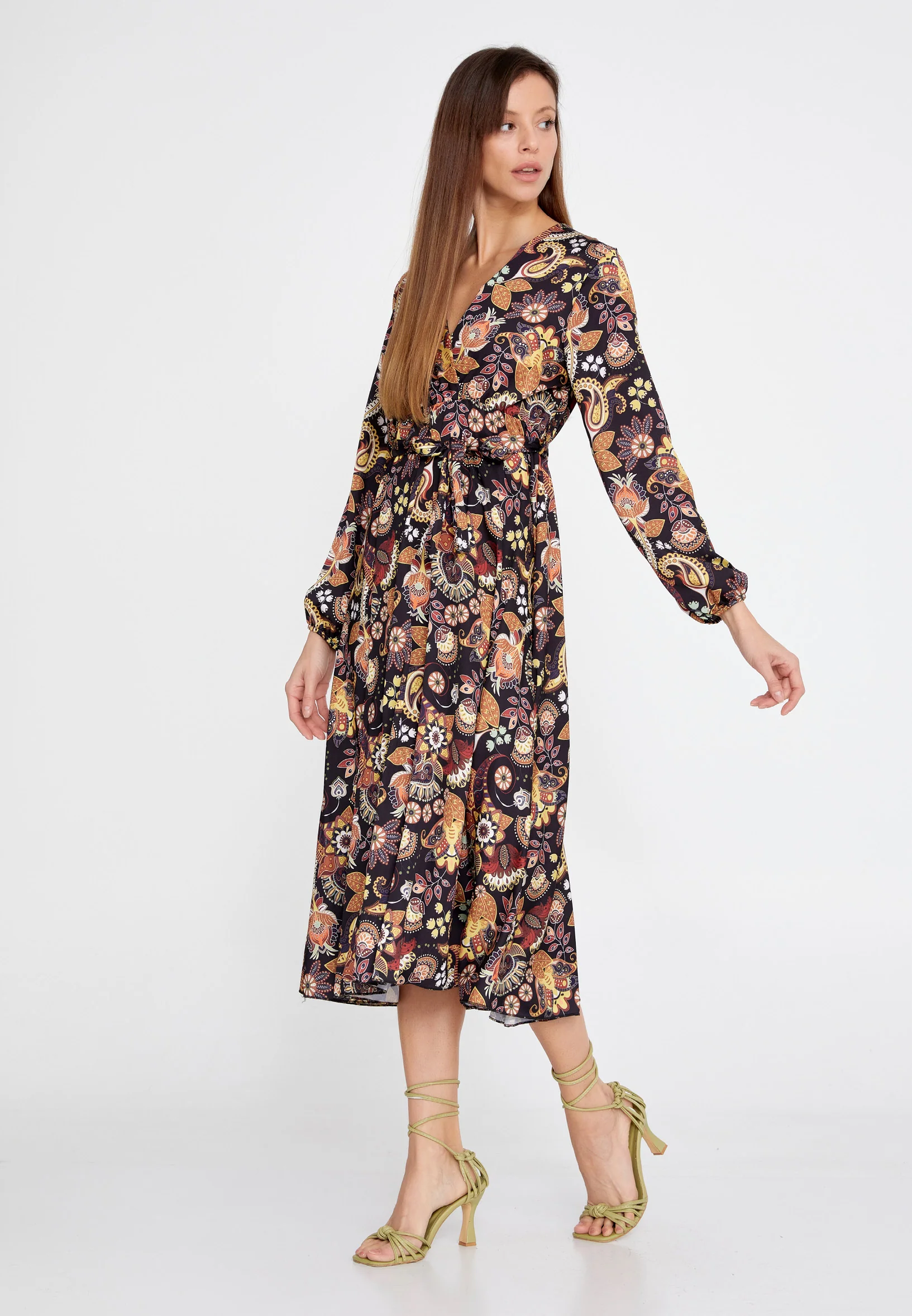 Long Sleeve Midi Crepe Column Regular Casual Dress llc22k0906