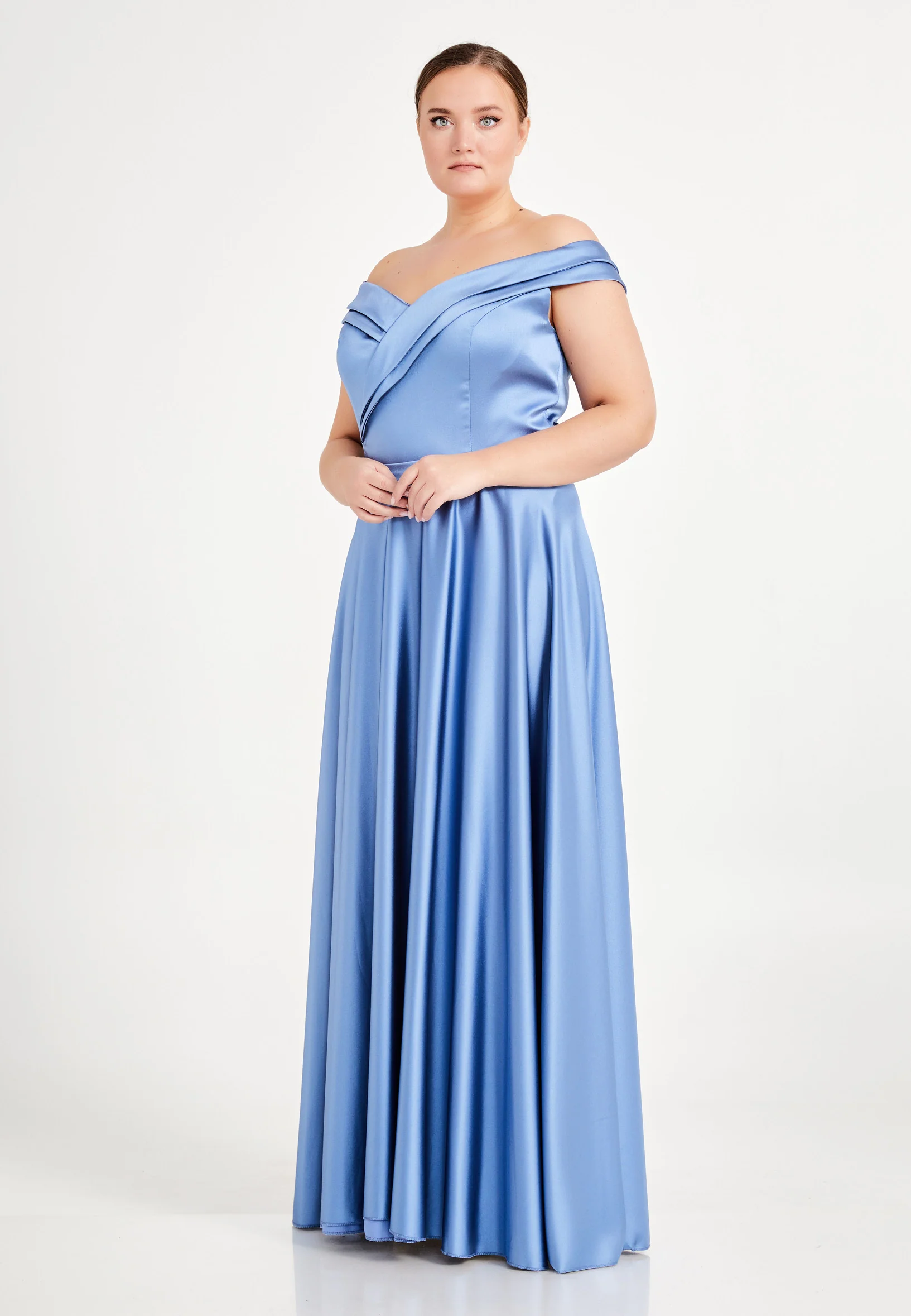 Off Shoulder Maxi Satin Column Plus Size Evening Dress brq1080-b