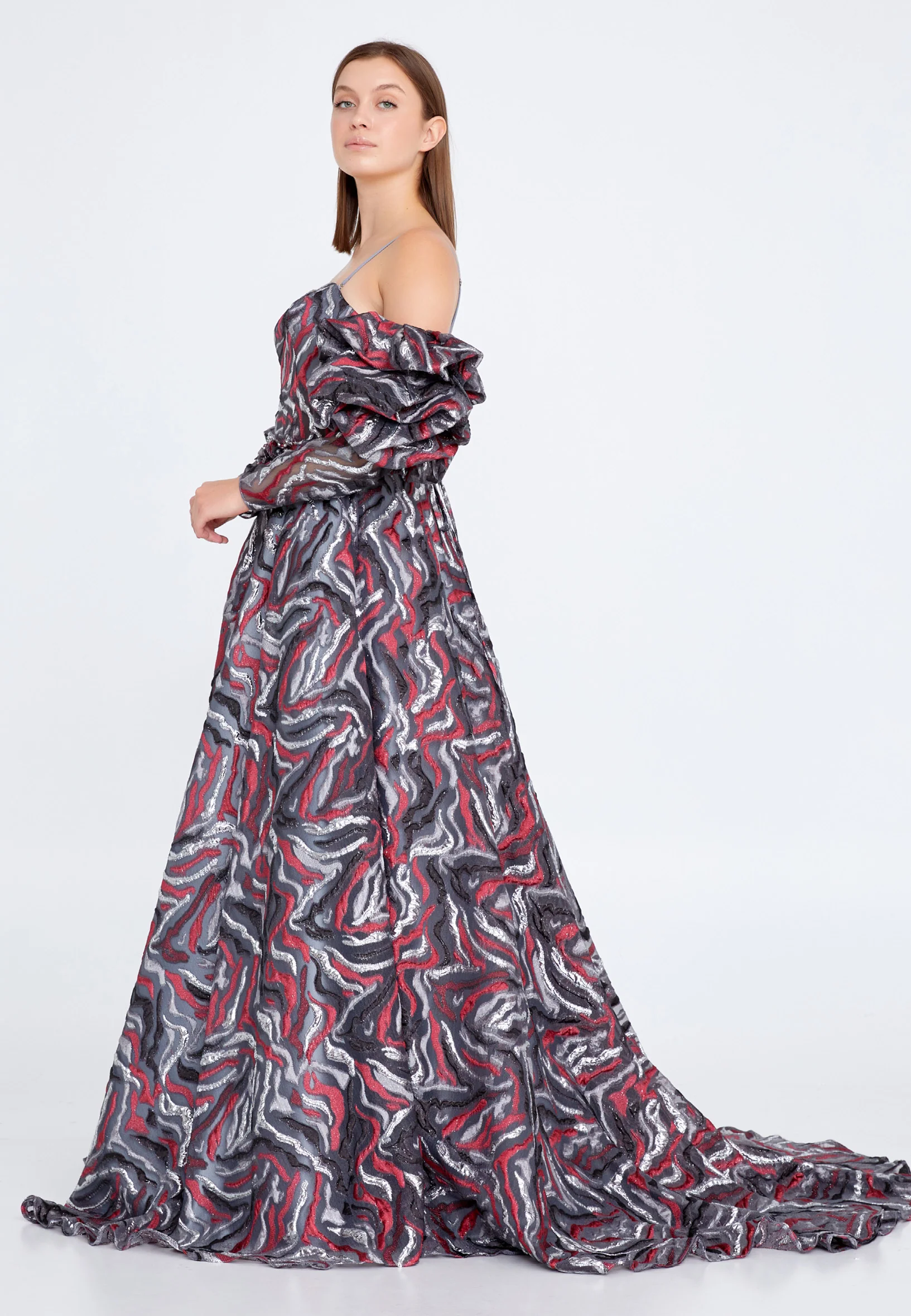 Off Shoulder Maxi Tulle Gown Regular Prom Dress knz3086