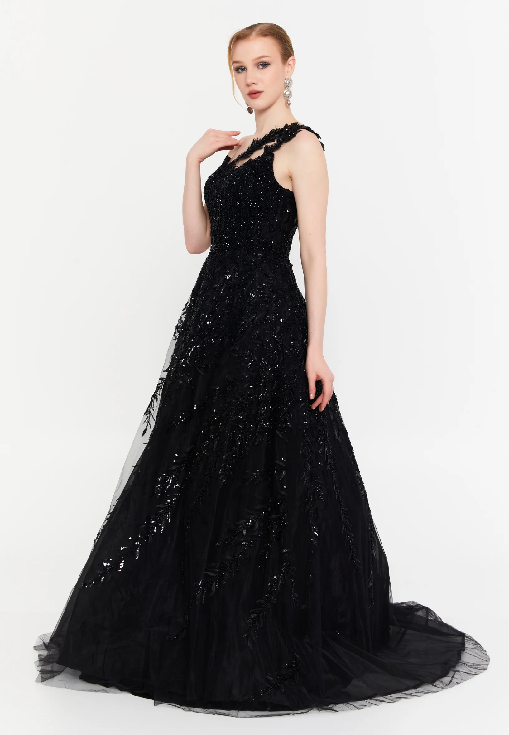 One Shoulder Maxi Tulle A - Line Regular Prom Dress mtc2617