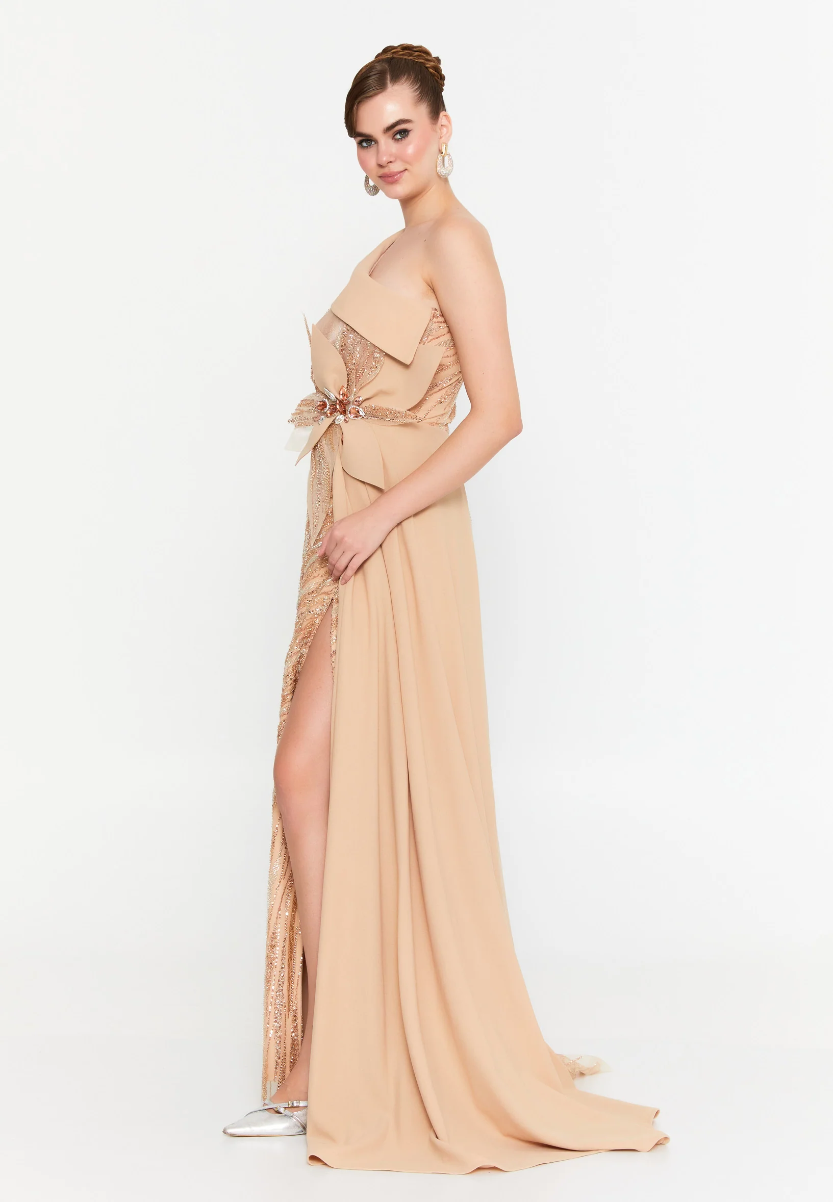 One Shoulder Maxi Tulle Mermaid Regular Prom Dress mtr88217