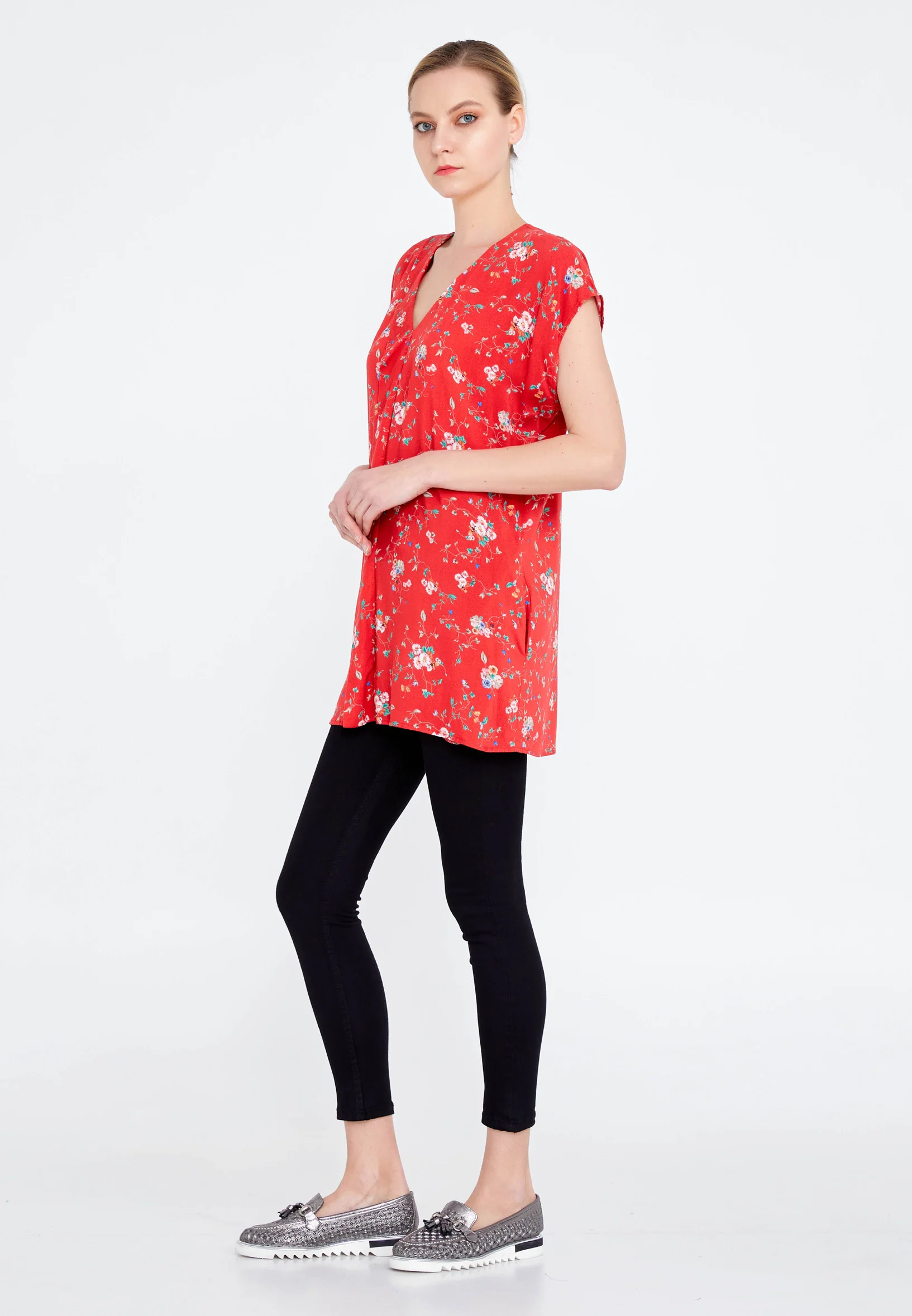 Short Sleeve Floral Regular Blouse faiu36390