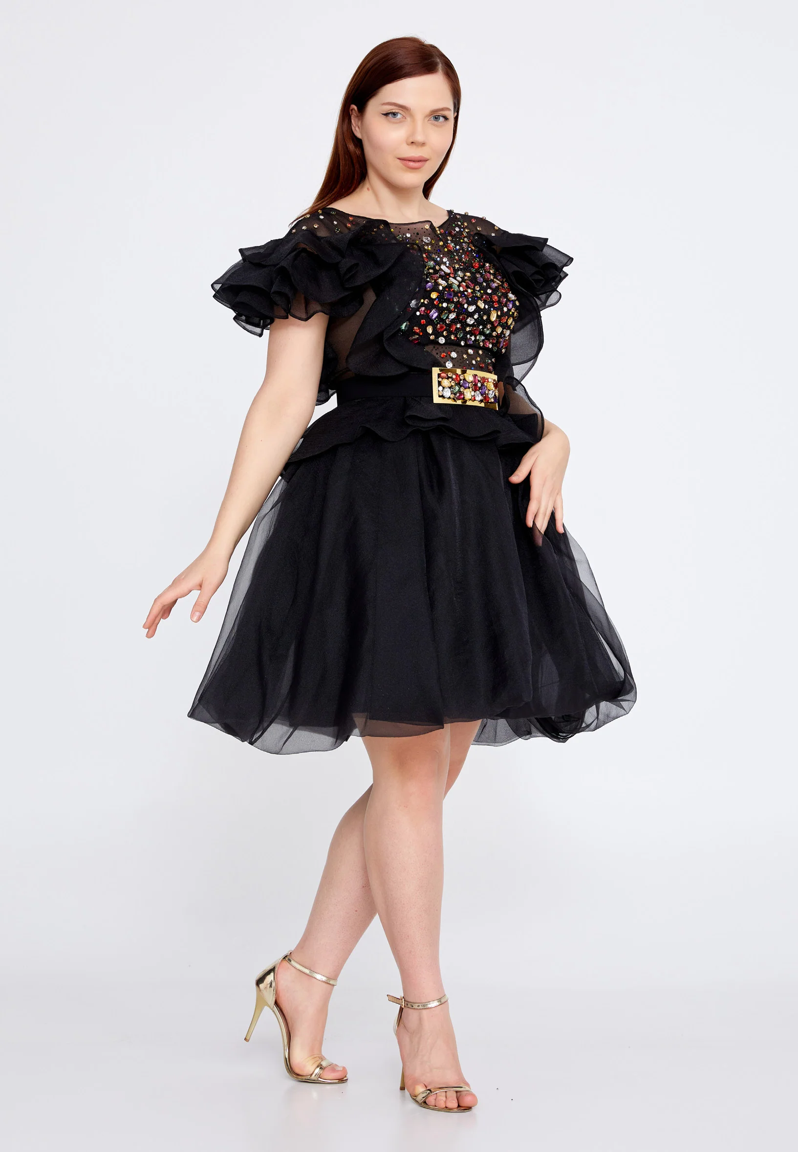 Short Sleeve Mini Polyester A - Line Plus Size Prom Dress crm22sel0818-b