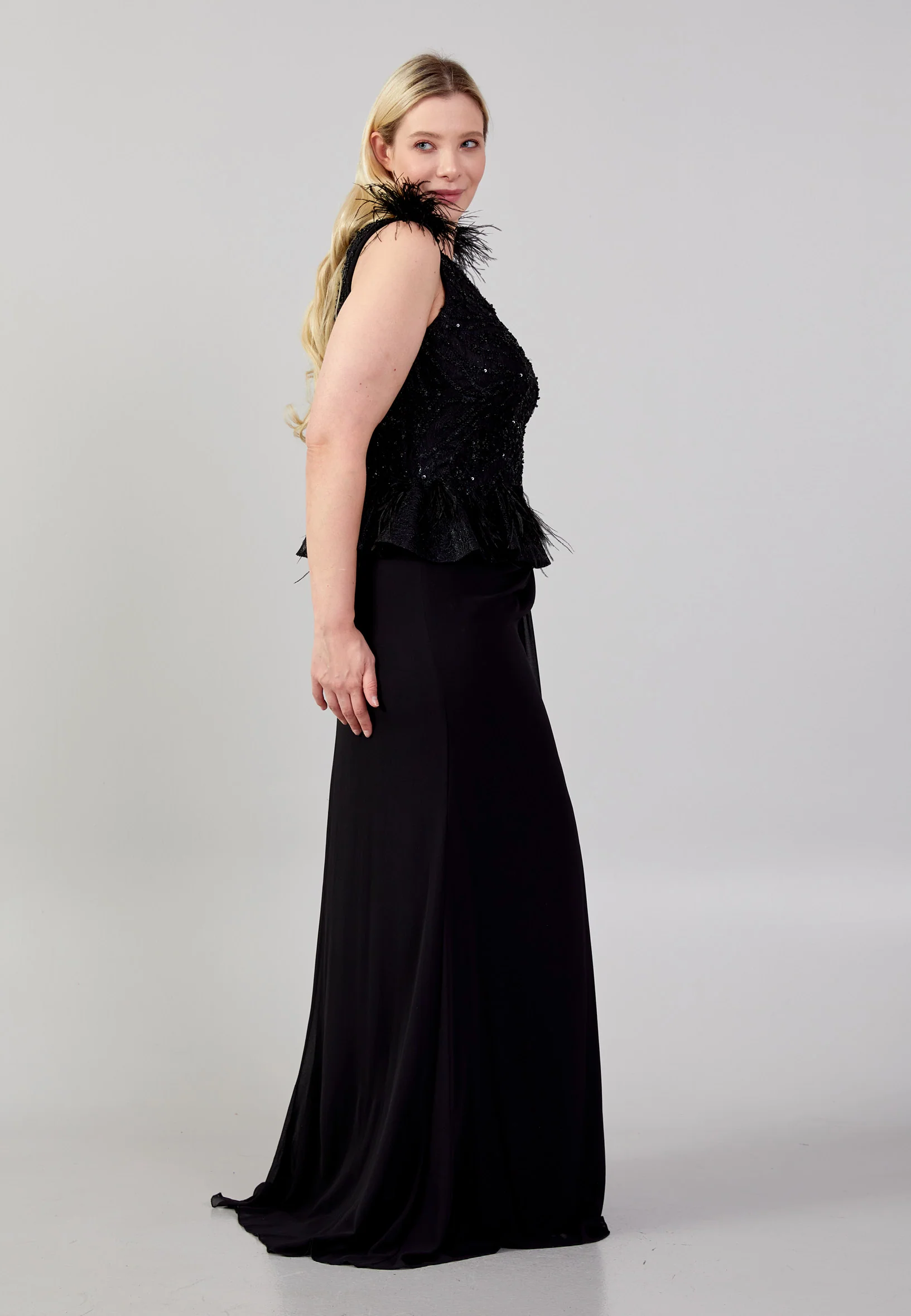 Sleeveless Maxi Crepe Column Plus Size Wedding Guest Dress omn673