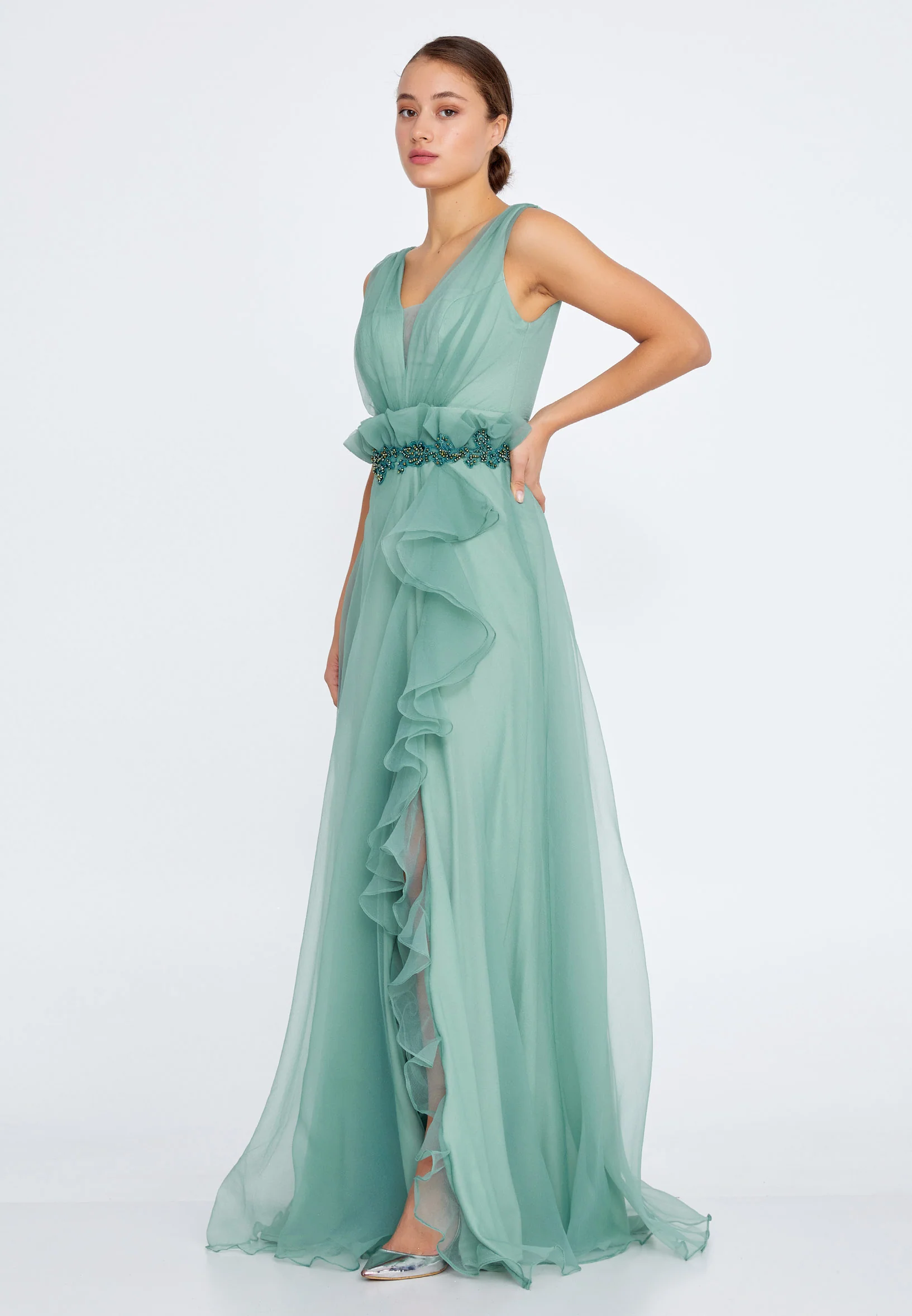 Sleeveless Maxi Crepe Column Regular Evening Dress aln1646